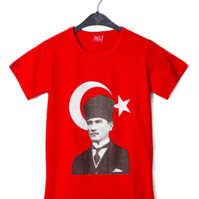 Kısa Kollu Dijital Baskılı Kırmızı Beyaz Atatürk Kalpaklı Çocuk T-shirt