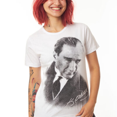 Kısa Kollu Dijital Baskılı Beyaz Siyah Atatürk Resimli imzalı Çocuk T-shirt
