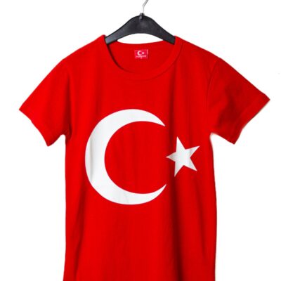 Kısa Kollu Dijital Baskılı Kırmızı Beyaz Ayyıldız Çocuk T-shirt