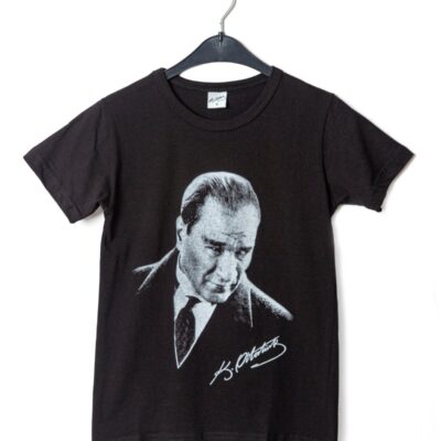 Kısa Kollu Dijital Baskılı Siyah Beyaz Atatürk Resimli imzalı Çocuk T-shirt